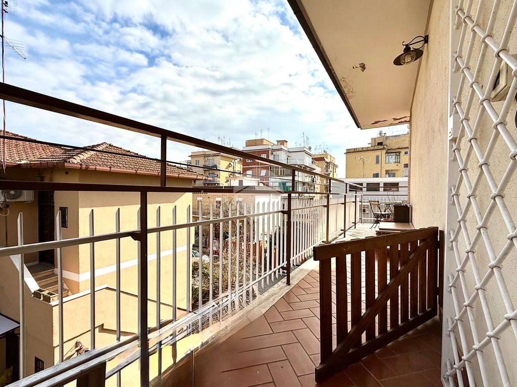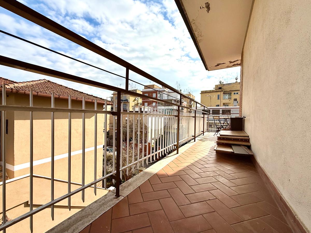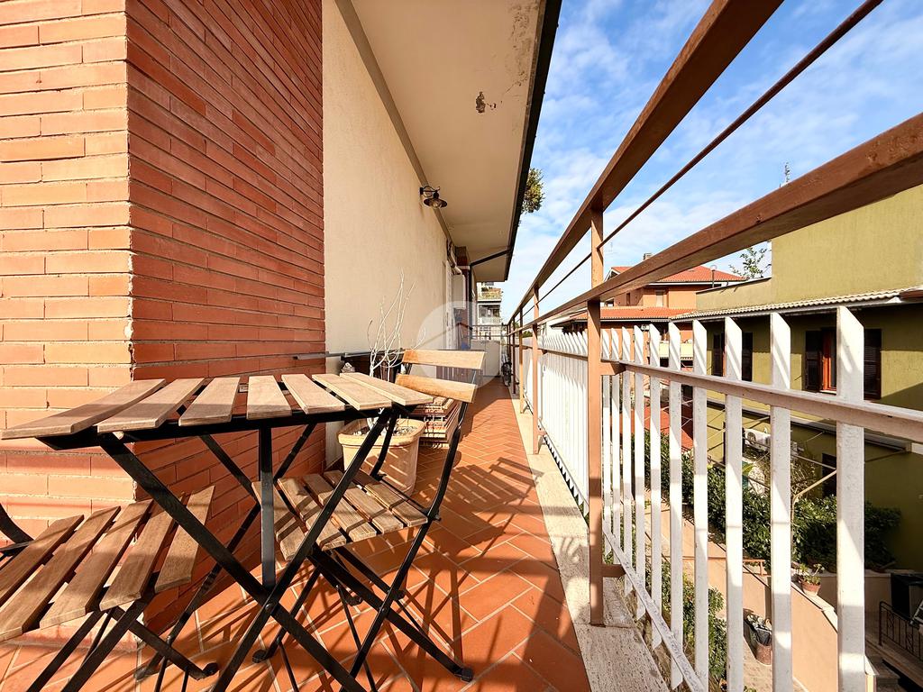L’appartamento si compone di ingresso, luminoso salone, cucina abitabile con accesso a un balcone angolare con esposizione sud-est, due ampie camere da letto, bagno finestrato con vasca, ripostiglio e un pratico soppalco, ideali per ottimizzare gli spazi.